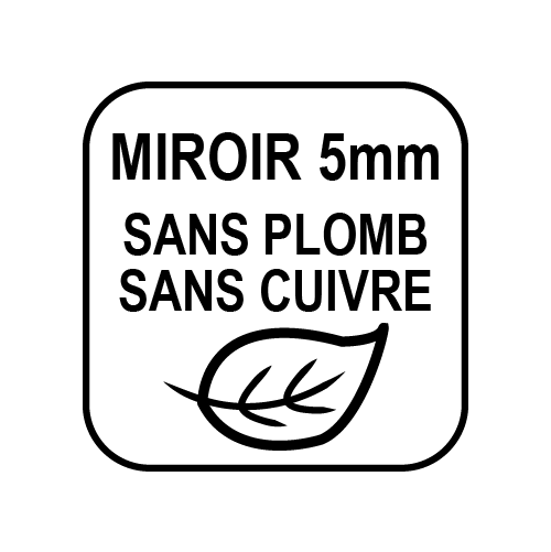 Conçu en verre de 5 mm sans plomb ni cuivre, il est renforcé par un film anti-éclat pour plus de sécurité. Son éclairage LED longue durée est testé pour 30 000 heures d’utilisation et plus de 15 000 cycles on/off. En cas de panne, le système d’éclairage peut être remplacé rapidement.